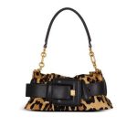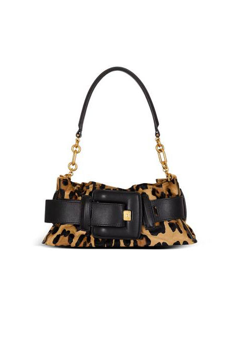 Metal PB logo on the back , Magnetic fastening , Embossed leather inside card pocket , Gold hardware , Soft belted style , Carry in the hand or wear on the shoulder , Detachable chain and leather handle , Smooth leather belt and belt loops