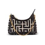 Visible zip fastening with PB slider , Leather luggage tag with embossed Balmain Paris logo , Embossed leather inside card pocket , Carry in the hand, on the shoulder or across the body , Chain handle , Adjustable and removable leather shoulder strap with a buckle and snap hooks