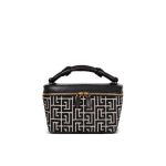 Visible double metal zip fastening , Leather slider , Balmain Paris-embossed leather knotted label , Twill patch pocket , Carry in the hand, on the shoulder or across the body , Topstitched leather top , Rounded handle with interlaced leather details
