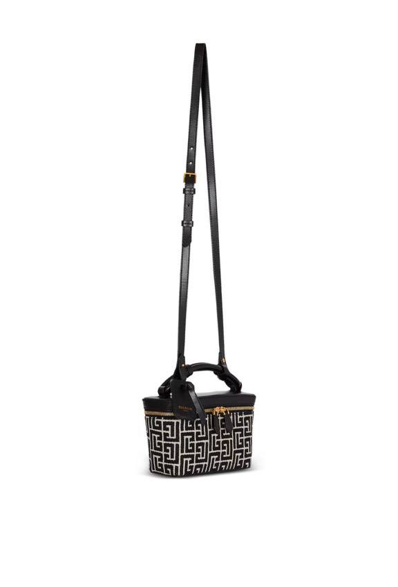 Visible double metal zip fastening , Leather slider , Balmain Paris-embossed leather knotted label , Twill patch pocket , Carry in the hand, on the shoulder or across the body , Topstitched leather top , Rounded handle with interlaced leather details