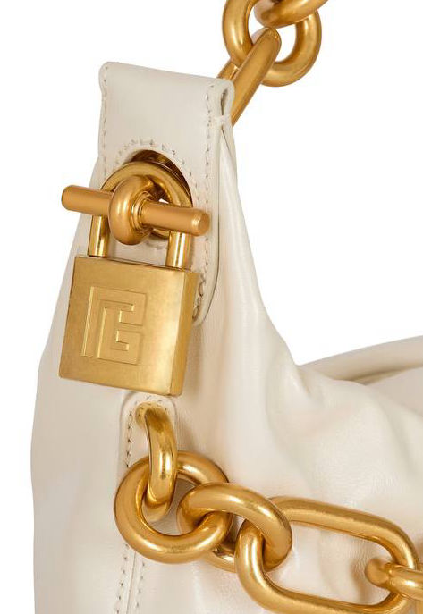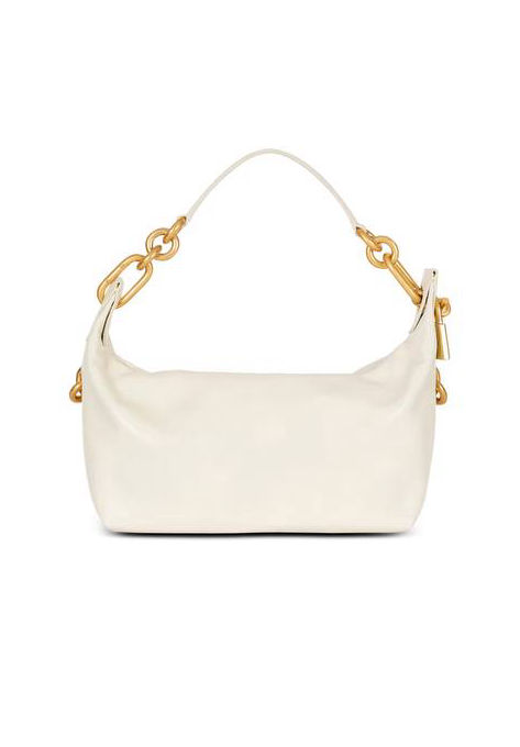 Zip fastening with leather slider , Embossed leather inside card pocket,  Canvas lining, Gold hardware , Soft leather bag , Chain and leather handles , Eyelets on the sides
