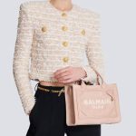 • Adjustable leather shoulder strap with stud buttons • Leather fastening with stud buttons • Leather inside pocket with embossed Balmain logo • Reinforced bottom • Leather bag feet • Gold hardware • Dimensions: 8.5 x 26 x 20.5 cm • Shoulder strap: 90 cm • Main material: 100% calfskin