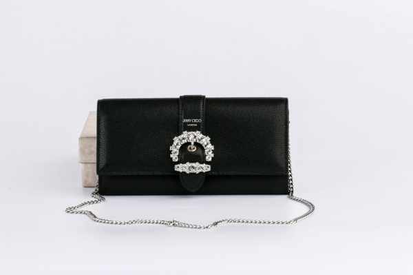 Jimmy Choo Black Calf Leather Wallet with Crystal Buckle