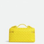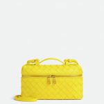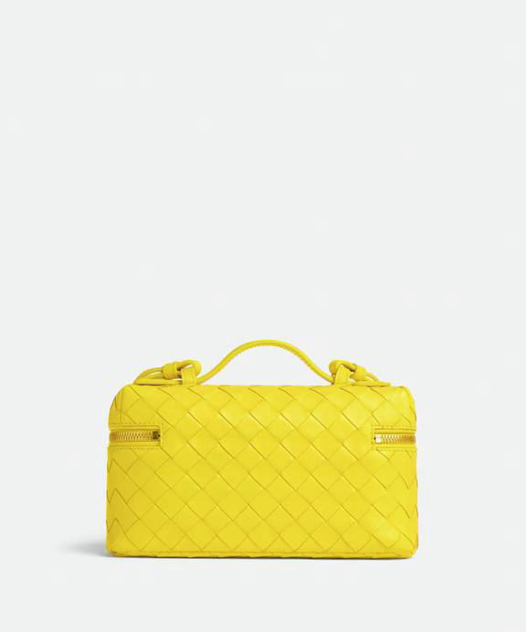 Lining: Calfskin ,  Hardware: Gold finish , Intrecciato leather vanity case with detachable strap , One main compartment, one flat pocket , Zippered closure