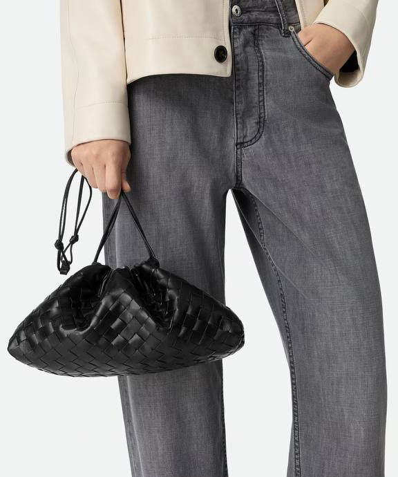 Lining: Nylon, Hardware: Muse brass finish , One main compartment , Drawstring closure • Leather loop attachment for shoulder carry , Leather braided metal chain