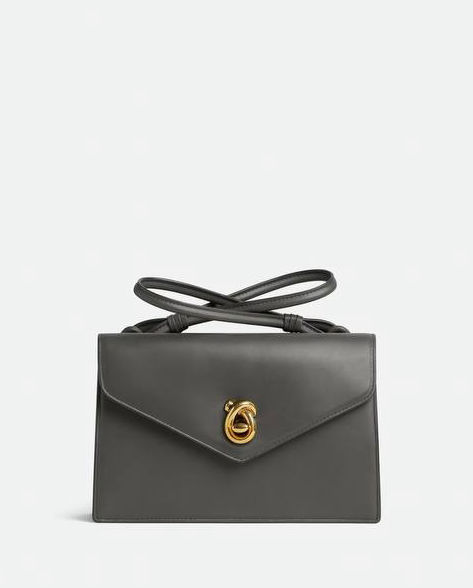 Back flap pocket , Metallic knot lock closure , Lining: Lambskin , Hardware: Brass finish , One main compartment , Single interior zipped pocket