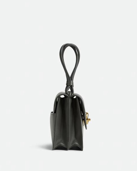 Back flap pocket , Metallic knot lock closure , Lining: Lambskin , Hardware: Brass finish , One main compartment , Single interior zipped pocket