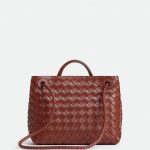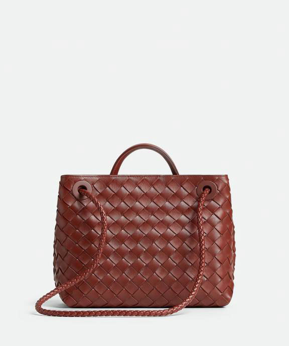 Lining: Lambskin bonded Intrecciato , Colour: Nocciola , Hardware: Brass finish ,Compartmented interior with one zipped pocket, one open pocket , Magnetic closure, Small Intrecciato leather top handle bag with sliding cross-body strap