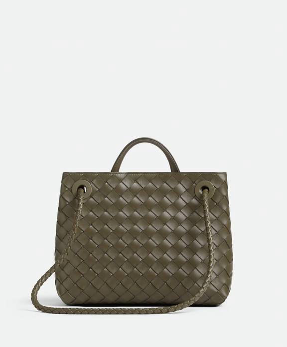 Lining: Lambskin bonded Intrecciato , Colour: Nocciola , Hardware: Brass finish , Compartmented interior with one zipped pocket, one open pocket , Magnetic closure