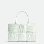 Small foulard Intreccio leather tote bag. Single detachable interior zipped pocket. Leather string closure. Lining: Calfskin bonded Intreccio. Color: Glacier. Hardware: Brass finish