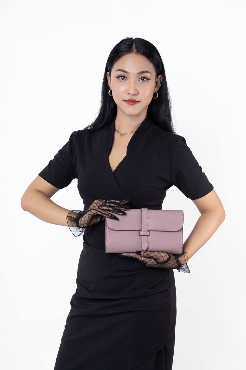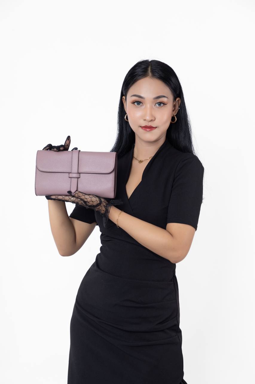 – 1 main zip pocket and many card pockets inside and one back pocket including