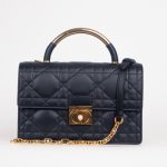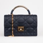 Gold-finish metal top handle engraved with Christian Dior Paris