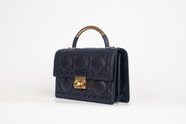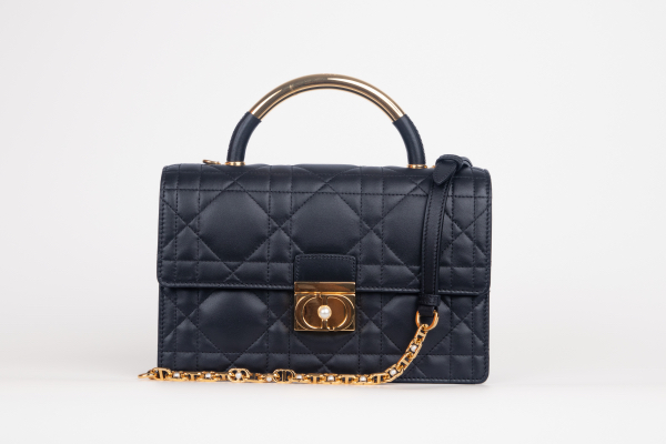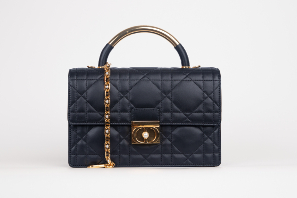 Gold-finish metal top handle engraved with Christian Dior Paris