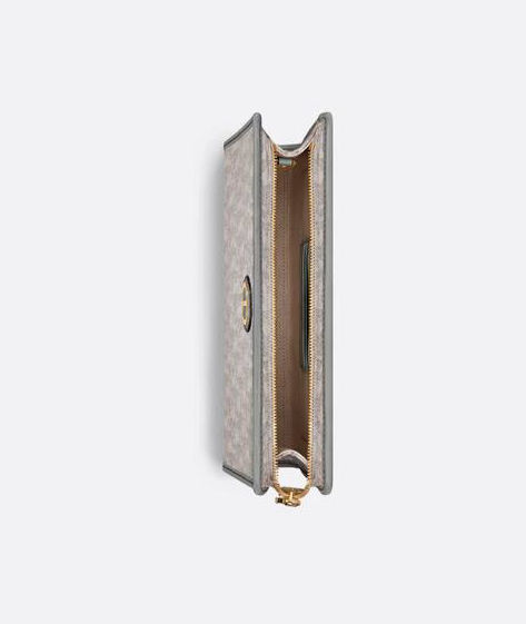 Zip closure , One interior compartment, One interior slip pocket , One leather wrist strap , Three card slots , Cotton, linen, calfskin and technical fabric lining , Main composition: cotton, technical fabric and calfskin