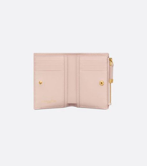 One bill compartment, One zip pocket , Snap closure , Lambskin and technical fabric lining, CD signature on the front