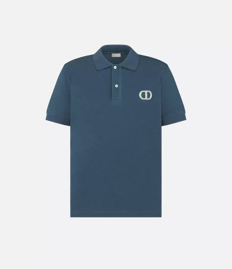 Ribbed polo collar and sleeve hems,  Mother-of-pearl Dior buttons,100% cotton , Contrasting CD Icon embroidery on the chest