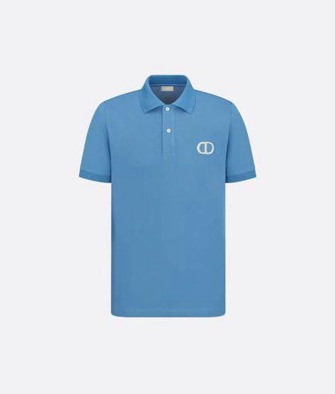 Ribbed polo collar and sleeve hems,  Mother-of-pearl Dior buttons,  100% cotton , Tonal CD Icon embroidery on the front