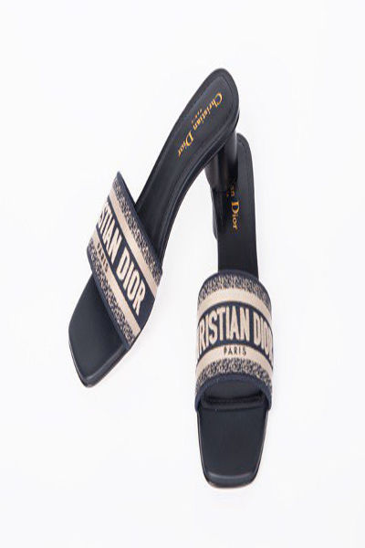 The Dway slide is a timeless, hallmark piece. The deep blue cotton upper is embroidered with the instantly recognizable Christian Dior Paris signature. Featuring an elegant square toe and 3.5 cm (1.5-inch) cylindrical heel, the slide will effortlessly complete a wide range of outfits.