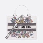 White Multicolor Dior Zodiac Flowers Embroidery and White Calfskin