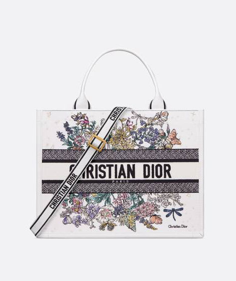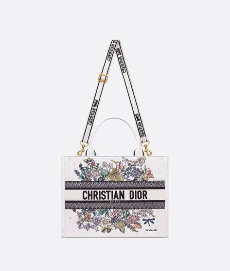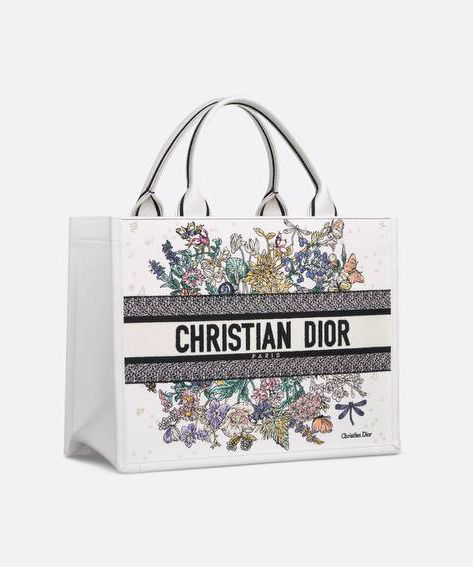 White Multicolor Dior Zodiac Flowers Embroidery and White Calfskin