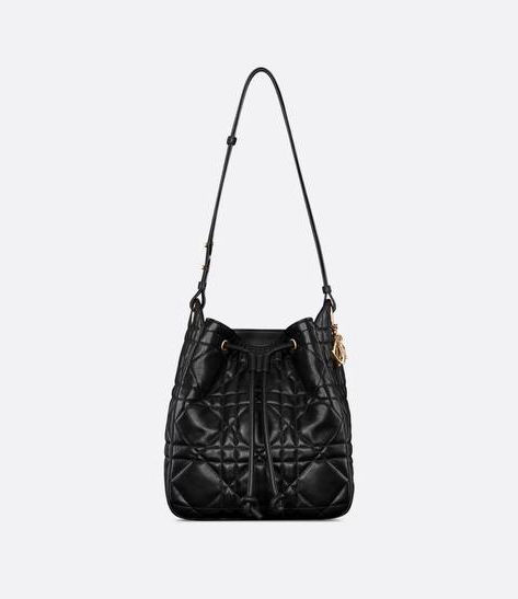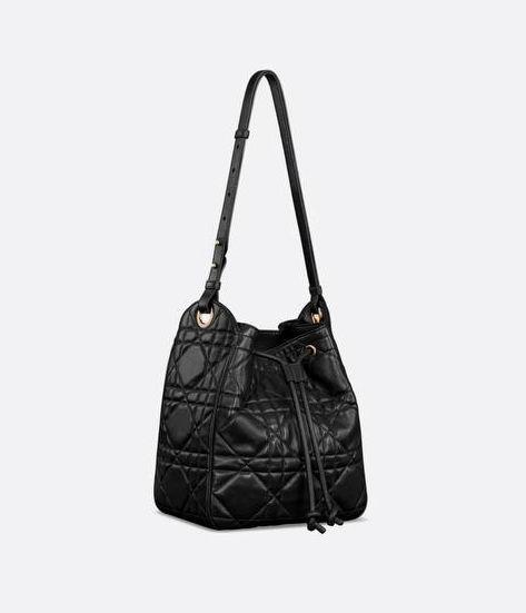 Adjustable leather strap,  Two exterior side pockets,  Interior zip pocket,  Dust bag included , Calfskin lining,  Drawstring closure , Main composition: lambskin and calfskin