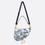 White and Blue Toile de Jouy Palms Printed Calfskin