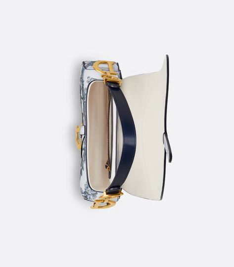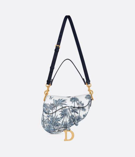White and Blue Toile de Jouy Palms Printed Calfskin
