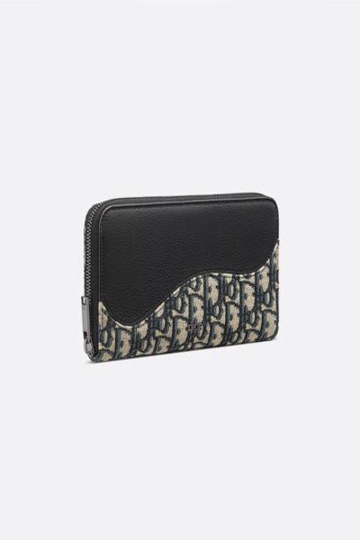 Black Grained Calfskin Marquetry with Beige and Black Dior Oblique Jacquard