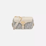 Blue Dior Oblique Chambray with Raffia Effect and Light Biscuit Smooth Calfskin