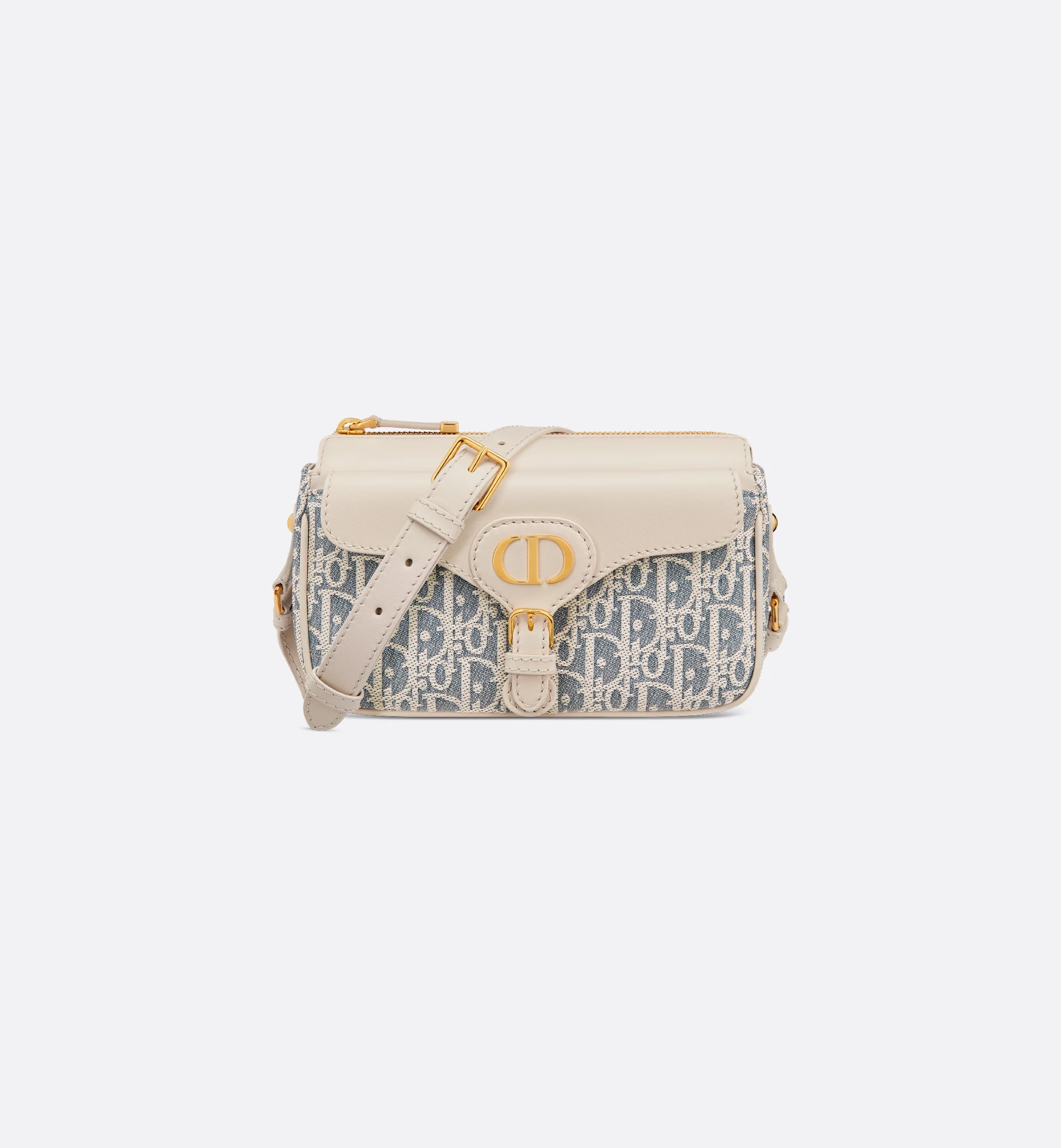 Blue Dior Oblique Chambray with Raffia Effect and Light Biscuit Smooth Calfskin