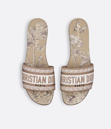 Christian Dior Paris signature embroidered on the upper , Leather insole with Toile de Jouy Palms motif , Main composition: cotton Goatskin lining
