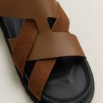 Techno-sandal in calfskin and suede goatskin. An interlaced silhouette inspired by the “H” signature motif, a casual look perfect for summer