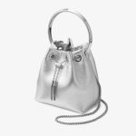 Jimmy Choo Bon Bon Silver Metallic Nappa Bag with Metal Handle