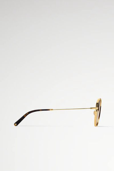 Gold-colour frames , Gradient Brown Monogram lenses,  Pilot shape,  Monogram pattern engraved on rims