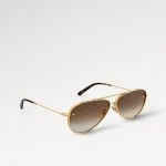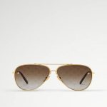 Gold-colour frames , Gradient Brown Monogram lenses,  Pilot shape,  Monogram pattern engraved on rims