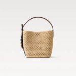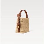 Strap: Non-removable, adjustable , Strap Drop: 12.0 cm , Strap Drop Max: 55.0 cm , Handle: Single , Cowhide leather trim, Raffia lining , Gold-colour hardware, Magnet and hook closure, 1 name tag and padlock , Raffia