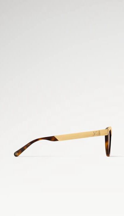Cat eye shape , Tortoiseshell/Gold , Acetate and metal frame,  Full Brown lenses , Engraved LV signature on temples