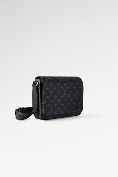 Strap: Non-removable, adjustable,  Strap Drop: 31.0 cm , Strap Drop Max: 62.0 cm, Monogram Eclipse coated canvas Cowhide leather trim , Silver-colour hardware , Flap with magnetic closure , Zipped back pocket , 2 inside flat pockets