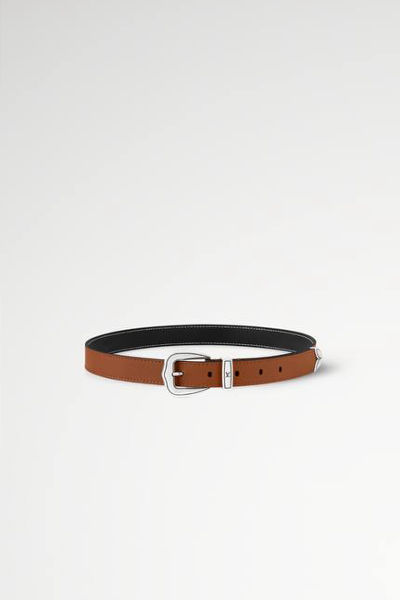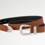 Aged silver-colour hardware , Silver-toned square buckle, Cognac Brown , Leather strap