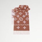 Monogram jacquard weave , Louis Vuitton signature , Fringe finish , Hazelnut , 100% wool