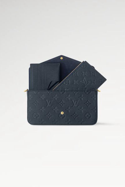 Large compartment , Removable zipped pocket , Removable flat pocket with 8 card slots , Flat inside pocket , Chain: Removable, Monogram Empreinte embossed supple grained cowhide leather, Microfibre lining and cowhide leather lining for leather removable parts, Gold-colour hardware, Press stud closure