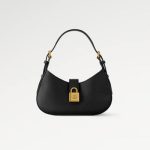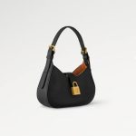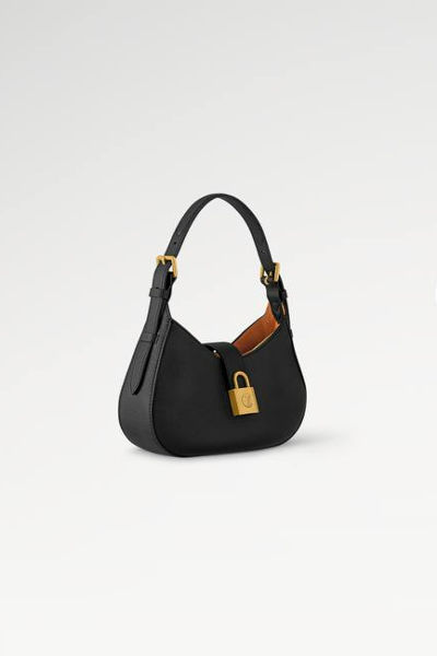 Grained calfskin, Calfskin trim, Suede calfskin lining, Gold-colour hardware, Hook closure, Padlock