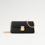 Flat inside pocket , Fits: a 17-cm/6.7-inch smartphone, a Romy ,Card Holder, earphones, sunglasses, keys and lipstick , Chain: Removable , Monogram Empreinte embossed supple grained cowhide leather , Textile lining