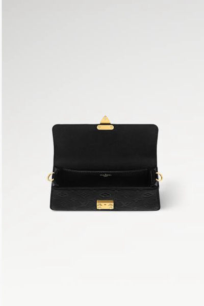 Flat inside pocket , Fits: a 17-cm/6.7-inch smartphone, a Romy ,Card Holder, earphones, sunglasses, keys and lipstick , Chain: Removable , Monogram Empreinte embossed supple grained cowhide leather , Textile lining
