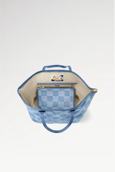 Padlock , Removable name tag , Zipped inside pocket , Removable pouch in denim cotton canvas , Handle: Double, Damier Denim 3D cotton canvas , Cowhide leather trim, Gold-colour hardware , Double zip closure