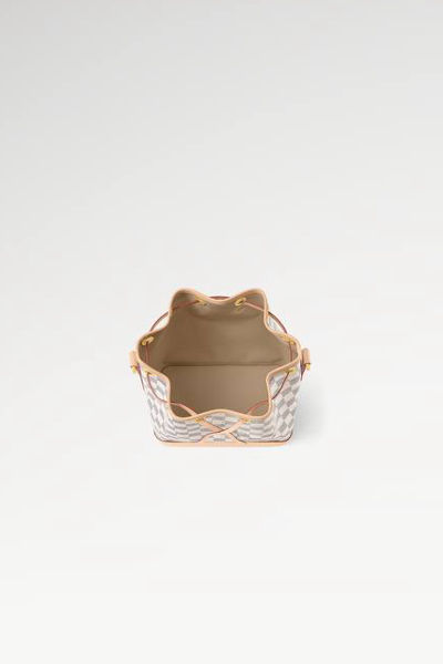 Strap: Removable, adjustable , Strap Drop: 50.0 cm , Strap Drop Max: 55.0 cm selected ,Damier Azur coated canvas , Natural cowhide leather trim, Textile lining, Gold-colour hardware, Drawstring closure