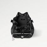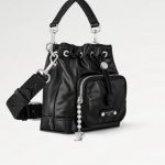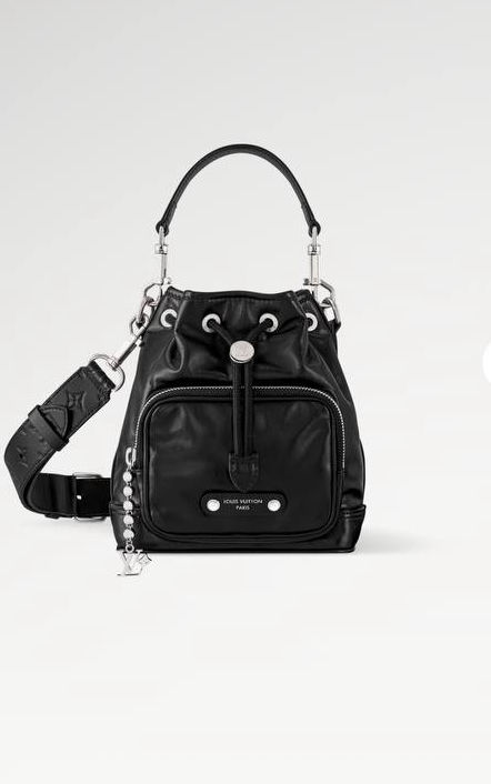 Calf leather and cowhide leather trim ,Textile lining , Silver-colour hardware , Drawstring and metallic closure system, Calf leather
