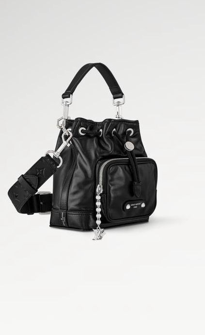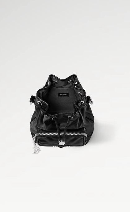 Calf leather and cowhide leather trim ,Textile lining , Silver-colour hardware , Drawstring and metallic closure system, Calf leather