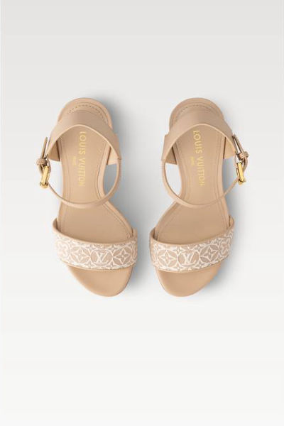 Adjustable buckle strap Signature details , Leather outsole , 8 cm/3.1-inch Monogram Flower heel