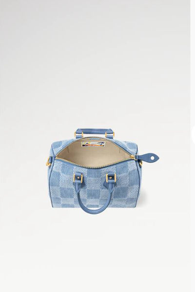 Zipped main compartment with lock , Dual flat inside pocket , Flat inside pocket , Removable name tag , Chain: Sliding, non-removable , Handle: Single x2 , Damier Denim 3D cotton canvas , Cowhide leather trim